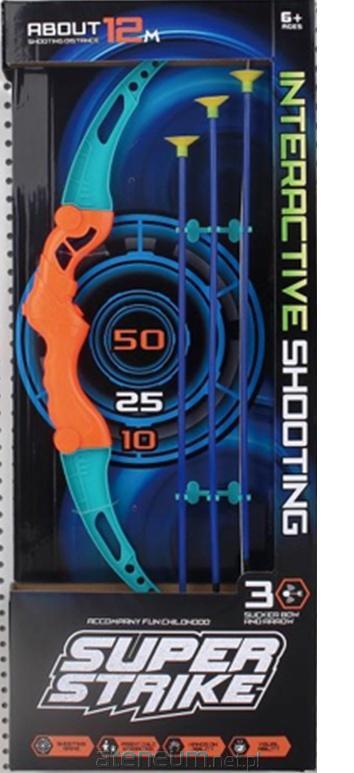 W zestawie: łuk dł. 50 cm, 3 strzały na przyssawki, funkcje: z opakowania można wyciąć tarczę i strzelać do niej strzałami, strzały na przyssawki przyczepiają się do płaskiej, gładkiej powierzchni, wym. Opak. 25,5 x 64 x 4,5 cm, 3+