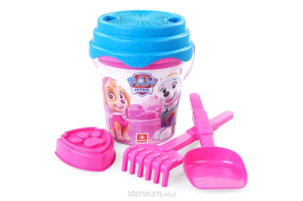 W zestawie: wiaderko śr. 18 cm, sitko, łopatka, grabki, foremka do piasku, Pozostałe informacje: wym. wiaderka: 18 x 31 cm., 3+