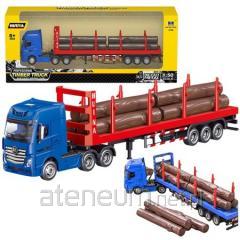 Ciężarówka transport drewna metalowa 1:50 czerwona