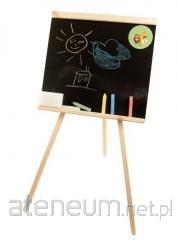 Obrotowa, suchościeralno-kredowa tablica z rolką papieru i liczydłem. Kolory tablicy: na kredę czarny, na marker żółty. Oprócz liczydła i papieru wyposażona w gąbkę i kredę. Marker w zestawie. .