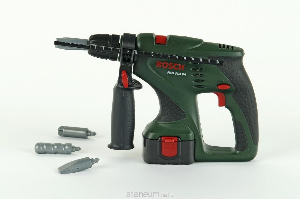 Młotowiertarka marki Klein pochodzi z serii zabawek Bosch mini powstałej na licencji firmy Bosch, dlatego też jest kopią faktycznie istniejącego narzędzia tej marki. Młotowiertarka jest w kolorze ciemno-zielonym z czarną obrotową pod różnym kątem rączką stabilizującą, czerwonym przyciskiem spustu, dwoma przełącznikami i czerwonym logo firmy Bosch. Młotowiertarka posiada dwa wygodne uchwyty i jak w prawdziwej pokryte są one czarnym wyprofilowanym imitującym gumę plastikiem ułatwiającym utrzymanie zabawki w dziecięcych dłoniach. Zabawka podczas pracy wydaje mechaniczny efekt dźwiękowy naśladujący dźwięk pracy silnika prawdziwej młotowiertarki. Ponadto urządzenie wyposażone jest w efekty ruchowe - obracające się w prawo i w lewo wiertło oraz dwie prędkości obrotów - wolną i szybką. Kierunek obrotów przełączany jest czerwonym przełącznikiem poniżej spustu, a prędkość obrotów reguluje czerwony przełącznik znajdujący się na czole zabawki. W zestawie z młotowiertarką znajdują się 4 wymienne wiertła o różnym kształcie. Wszystkie elementy młotowiertarki są wykonane z plastiku, pozbawione ostrych krawędzi i całkowicie bezpieczne dla dziecka. Bawiąc się dzieci już od najmłodszych lat w bezpieczny sposób będą mogły wcielić się w rolę majsterkowicza, zapewniając sobie realistyczne doświadczenie korzystania z tego narzędzia. Zabawka umożliwia maluchom kreatywną zabawę i doskonalenie umiejętności manualnych. Dzieci uwielbiają naśladować rodziców wykonujących codzienne czynności domowe lub w nich uczestniczyć, jednak nie zawsze jest to możliwe ze względów bezpieczeństwa, a dzięki tej całkowicie bezpiecznej dla dzieci, zabawkowej młotowiertarce każdy mały majsterkowicz może bezpiecznie robić to, co jego opiekunowie. Zabawka wymaga użycia baterii, które nie są zawarte w zestawie.