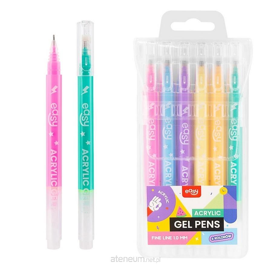 Długopisy żelowe akrylowe, 6 kolorów.
