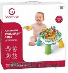 Kierownica Edukacyjna dla Niemowlaka Pomarańczowa Prezentowana zabawka edukacyjna to idealny produkt na pierwsze miesiące życia maluszka. Kierownica wyposażona w kolorowe przyciski sprawi dziecku wielką przyjemność, kiedy dotknięcie wybranego elementu będzie skutkowało pojawieniem się światełek i dźwięków zabawa jest jeszcze lepsza. Dziecko poznaje wtedy otaczający świat, dodatkowo rozwijając jego sprawność motoryczną i zdolności manualne, słuch oraz zdolność rozumienia świata, kształtów i kolorów Zabawka imitująca prawdziwą kierownicę znaną z samochodu rodziców przyniesie dziecku ogromną frajdę i będzie doskonałym rozwiązaniem w trakcie podroży samochodem. Ponadto z prawej strony zabawki znajduje się drążek zmiany biegów, a z lewej regulowane lusterko. Kierownica posiada ruchomy korpus, dzięki czemu można dostosować jej ustawienie do położenia dziecka. Rozmiar kierownicy jest doskonale dopasowany do rozmiaru małych rączek dziecka, co tylko ułatwi mu odkrywanie nowych dźwięków i zjawisk. Funkcje kierownicy: - dźwignia zmiany biegów znajdująca się po lewej stronie posiada 3 biegi i wydaje dźwięk zegara po włączeniu biegu - poniżej znajduje się piłeczka, kiedy dziecko będzie nią poruszać szeleści, a koraliki się poruszają - kręcąc kierownicą słychać stukot - lewy przycisk po prawej stronie załącza muzykę, natomiast drążek posiada trzy etapy, każde naciśnięcie spowoduje przełączenie jednej ścieżki, a lampka zacznie migać z rytmem muzyki - prawy przycisk po prawej stronie, aby odtworzyć 4 rodzaje efektów dźwiękowych w pętli. Każde naciśnięcie przełącza efekt dźwiękowy, a światło będzie migać wraz z efektem dźwiękowym - włączenie kluczyka spowoduje że usłyszymy jak startuje auto, a światło będzie się zmieniać razem z dźwiękiem. Wymiary kierownicy: 22 cm x 10 cm x 16 cm Wymiary opakowania: 27 cm x 15 cm x 17, 5 cm Dziecięca kierownica z deską rozdzielczą przeznaczona jest dla wszystkich maluchów powyżej 18. miesiąca życia, posiada certyfikat CE, gwarantujący bezpieczną zabawę. By dziecko mogło korzystać ze wszystkich funkcji zabawki, należy umieścić w niej dwie sztuki baterii AA 1,5 V, które nie są dołączone do zestawu.