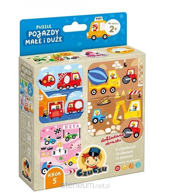 Edukacyjny zestaw zawiera 6 czteroelementowych układanek, które przedstawiają przeróżne auta, oraz 12 dokładanych żetonów. To doskonały pomysł na pierwsze trudniejsze puzzle oraz grę - ułożone scenki stanowią plansze, do których można dopasowywać kółeczka. Można to robić albo na czas, albo odwracając je obrazkiem do dołu i grając niczym w planszowe memory. Zabawa start!