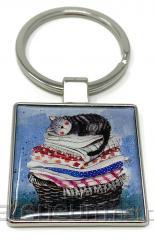 Brelok do kluczy K03 Kot na koszu z praniem