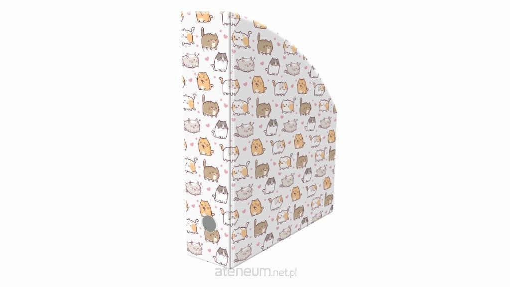 Wykonany z folii PVC z pełnym, ozdobnym nadrukiem, wewnątrz usztywniony tekturą. Okrągłe wycięcie na palec pozwalające na łatwe wysuwanie pojemnika. Szerokość grzbietu 7 cm. Format A4 o ściętych, zaokrąglonych bokach.