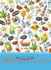 Notes wykonany z folii PVC z pełnym, ozdobnym nadrukiem. Wewnątrz, na całej szerokości znajdują się dwie przezroczyste kieszenie . Szeroki grzbiet umożliwiający umieszczenie wkładu nawet do 100 kartek. W zestawie z notesem w kratkę formatu A6.