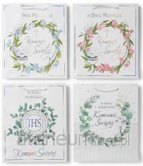 Książeczka z okazji I Komunii Świętej w formacie A5 wraz z kopertą w środku. Wyjątkowa książeczka upamiętniająca jeden z najważniejszych dni w życiu dziecka - Pierwszą Komunię Świętą. Elegancka i starannie wykonana pamiątka w formacie A5, ozdobiona złotymi detalami i delikatnymi ilustracjami nawiązującymi do sakramentu Eucharystii. Format: A5 (poręczny i elegancki), Kolorowe ilustracje w środku, które nadają całości wyjątkowego charakteru, Miejsce na osobiste wpisy - idealna do zachowania wspomnień z uroczystości, Koperta wewnątrz.