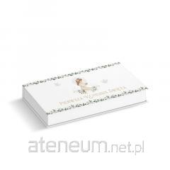 Książeczka z okazji I Komunii Świętej w formacie A5 wraz z kopertą w środku. Wyjątkowa książeczka upamiętniająca jeden z najważniejszych dni w życiu dziecka - Pierwszą Komunię Świętą. Elegancka i starannie wykonana pamiątka w formacie A5, ozdobiona złotymi detalami i delikatnymi ilustracjami nawiązującymi do sakramentu Eucharystii. Format: A5 (poręczny i elegancki), Kolorowe ilustracje w środku, które nadają całości wyjątkowego charakteru, Miejsce na osobiste wpisy - idealna do zachowania wspomnień z uroczystości, Koperta wewnątrz.