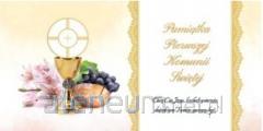 Książeczka z okazji I Komunii Świętej w formacie A5 wraz z kopertą w środku. Wyjątkowa książeczka upamiętniająca jeden z najważniejszych dni w życiu dziecka - Pierwszą Komunię Świętą. Elegancka i starannie wykonana pamiątka w formacie A5, ozdobiona złotymi detalami i delikatnymi ilustracjami nawiązującymi do sakramentu Eucharystii. Format: A5 (poręczny i elegancki), Kolorowe ilustracje w środku, które nadają całości wyjątkowego charakteru, Miejsce na osobiste wpisy - idealna do zachowania wspomnień z uroczystości, Koperta wewnątrz.