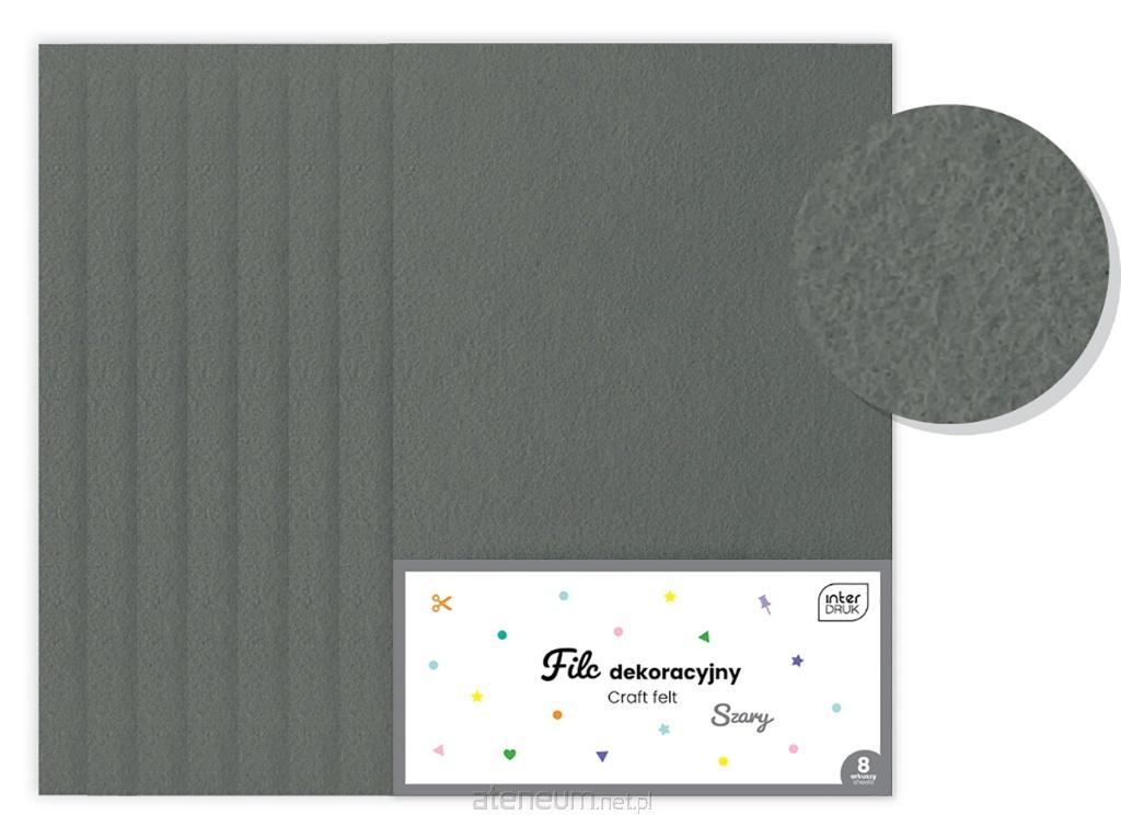 Opakowanie zawiera 8 arkuszy filców w rozmiarze A4 w szarym kolorze.