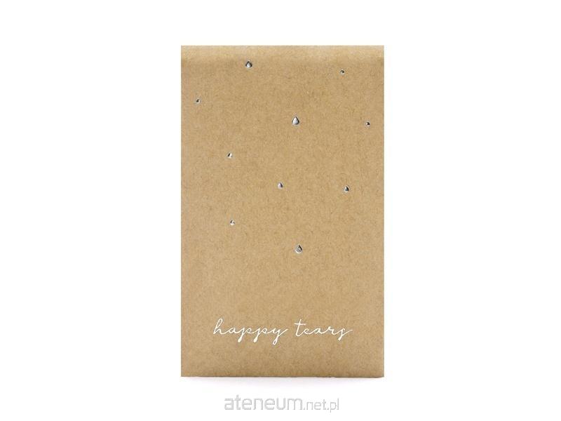 Chusteczki higieniczne spakowane w kraftową kopertę ze srebrnym nadrukiem i napisem Happy tears, zestaw zawiera 10 kopert, w każdej po 3 chusteczki. Wymiary pojedynczej koperty ok. 7,5 x 12 cm.(1 op. / 10 szt.)