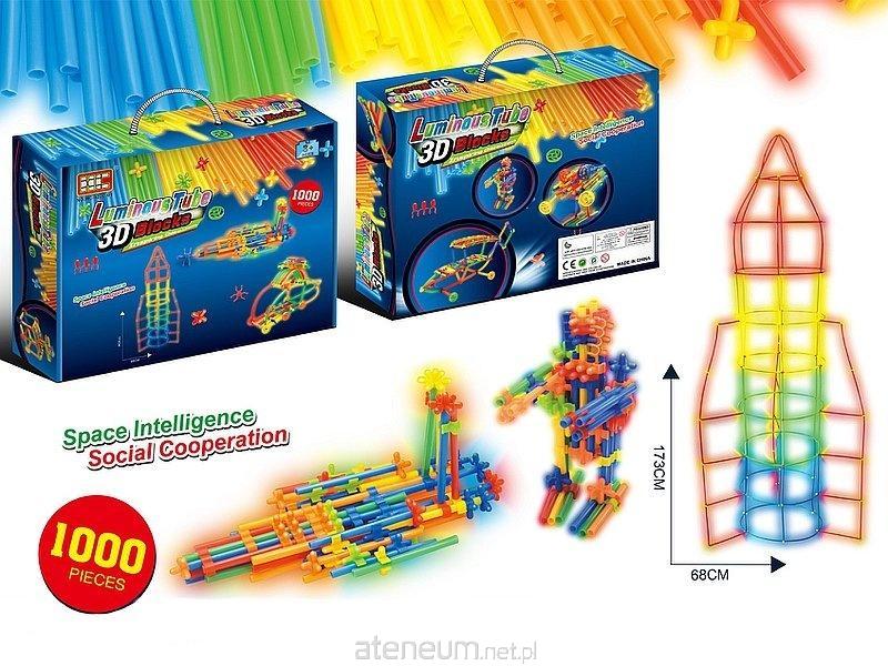 zestaw klocków fluo 1000szt, świecą w nocy, słomki; 37,5x29x8cm, Box