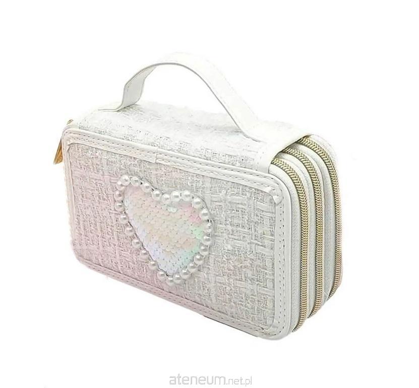 Stylowy piórnik Girabrilla wykonany jest z modnej tweedowej tkaniny, to doskonały wybór dla każdej dziewczynki, która lubi łączyć modę z praktycznością. Perłowe zdobienia i połyskujące serduszko nadają mu wyjątkowego charakteru. Piórnik posiada 3 pojemne przegrody zapewniają idealny porządek i łatwy dostęp do wszystkich przyborów szkolnych. W środku znajdziesz wszystko, czego potrzebujesz do nauki: kredki i pisaki w pięknych kolorach,ołówek, długopis i temperówkę, gumkę do ścierania i linijkę.