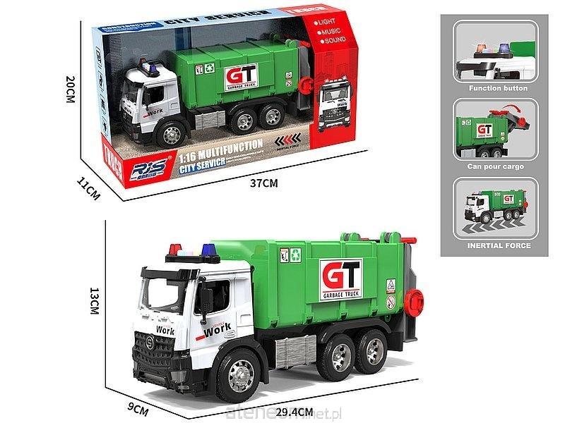 auto śmieciarka 1:16, napęd na koło zam; 37x20x11cm, W/B