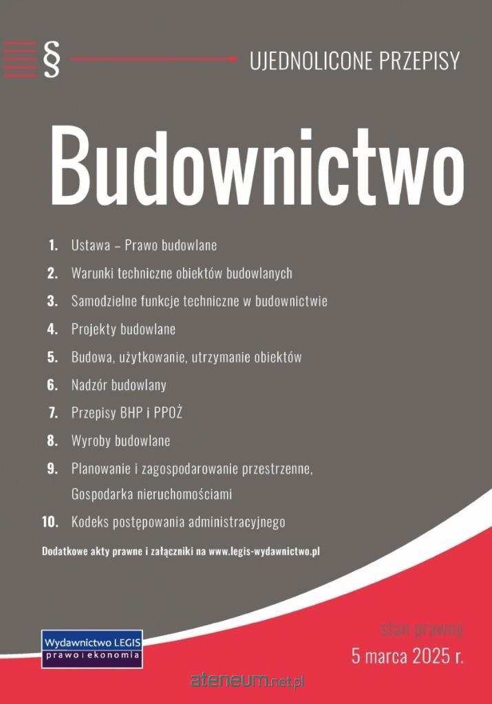 Książka stanowi kompleksowy zbiór przepisów, których znajomość jest niezbędna między innymi do egzaminu na uprawnienia budowlane. Jest bardzo poręczna, nawet przy pracy w terenie. Jej przejrzystość oraz układ są dodatkowym atutem. Ostatnie zmiany zostały wyróżnione wytłuszczonym drukiem. Przy każdej zmianie znajduje się przypis, informujący od kiedy zmiana obowiązuje i jakim aktem prawnym została wprowadzona.