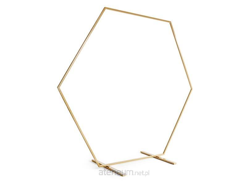 "Stojak na tło w kształcie heksagonu, wykonany z metalu w kolorze złotym, średnica po złożeniu ok. 2 m. Produkt łatwy w montażu, po złożeniu stanowi stabilną konstrukcję. Nadaje się do wielokrotnego użycia, idealny do profesjonalnego zastosowania. Stojak składa się z 8 elementów. Liczba elementów w kartonie: 8 części stojaka, 10 śrub do montażu, 2 klucze imbusowe oraz instrukcja. Wymiary kartonu: 40x20x80cm. Dokładne wymiary stojaka podane zostały na grafice pod zdjęciem produktu."