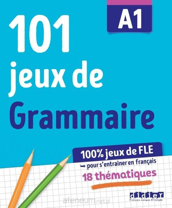 Kolorowa książka zawiera 101 ćwiczeń, krzyżówek, rebusów, zagadek dotyczących gramatyki i odmiany czasowników francuskich. Głównym celem książki jest nauka i powtórzenie w formie zabawy podstawowych zagadnień z gramatyki języka francuskiego. Książka została podzielona na 18 rozdziałów tematycznych: -11 tematów związanych z gramatyką języka francuskiego, -7 tematów dotyczących odmiany czasowników francuskich. Każdy rozdział zawiera krótkie wprowadzenie do tematu oraz od 3 do 7 gier i zadań do rozwiązania. Odpowiedzi do ćwiczeń znajdują się na dole strony. Mocne strony serii 101 jeux de FLE: -ćwiczenia odpowiednie dla różnych grup wiekowych, -nauka gramatyki francuskiej na poziomie początkującym poprzez zabawę, -atrakcyjna szata graficzna, -do wykorzystania na zajęciach lekcyjnych i w domu, -różnorodność ćwiczeń utrwalających i systematyzujących znajomość gramatyki i odmiany czasowników francuskich. Z kolekcji 101 jeux de FLE wydawnictwa Didier ukazały się następująe książki: -101 jeux de vocabulaire A1 -101 jeux de vocabulaire A2