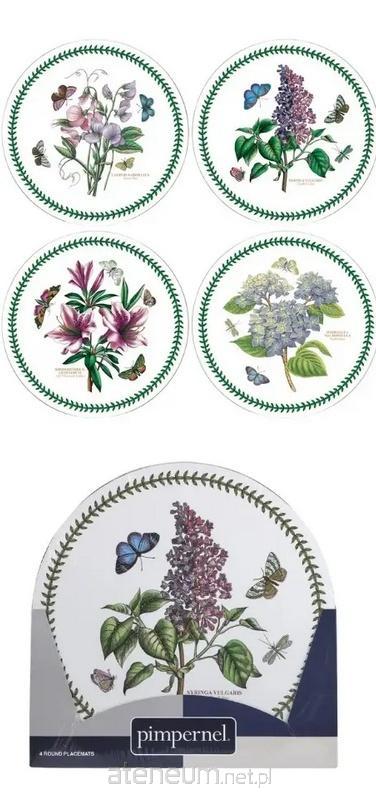 Zestaw czterech wspaniałych i praktycznych podkładek korkowych, ozdobionych pięknymi kwiatami i fruwającymi motylkami w ramce z listków z kolekcji Botanic Garden.