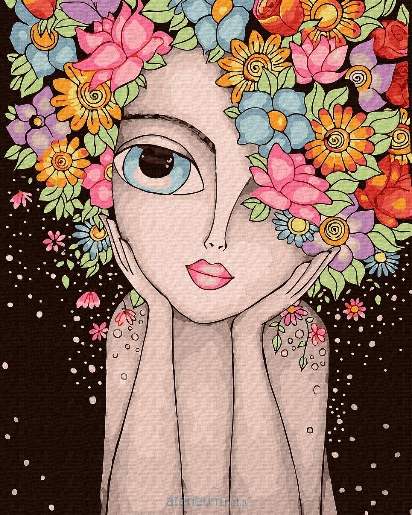 Zawiera: płótno na ramie, ponumerowane farby akrylowe, zestaw pędzli.