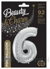 Balon foliowy cyfra 6 Beauty&Charm srebrna 92cm