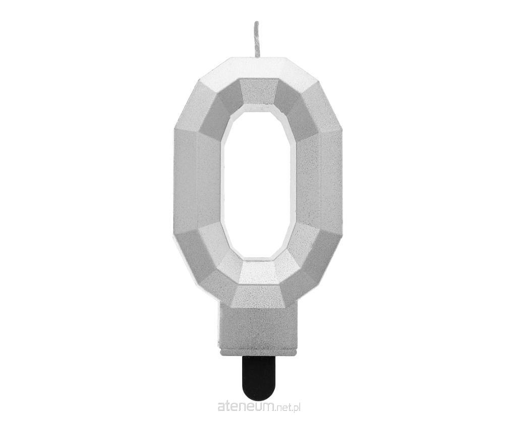świeczka na tort cyfra 0, metalizowana srebrna