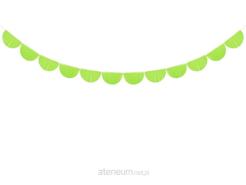 Girlanda bibułowa Frędzle w kolorze zielonego jabłuszka, szerokość pojedynczego modułu ok. 20 cm, długość girlandy ok. 3 m.