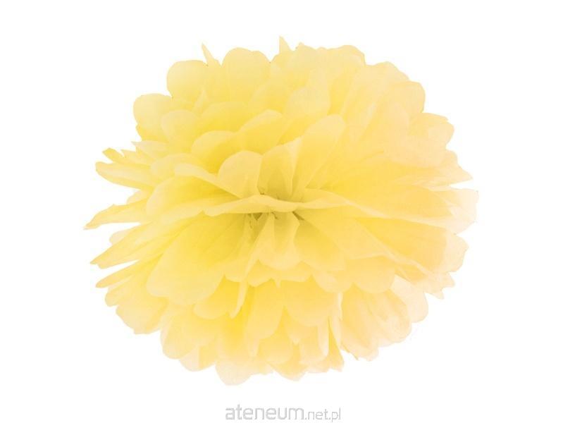 Pompon bibułowy w kolorze żółtym, rozmiar 25 centymetrów.