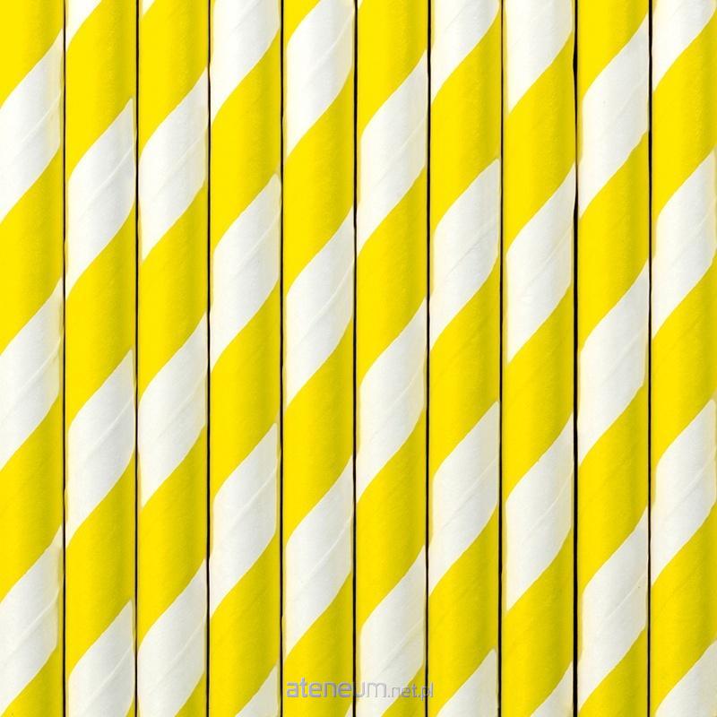Słomki papierowe w kolorze żółtym z białymi ukośnymi paskami, długość około 19,5 centymetra.(1 op. / 10 szt.)