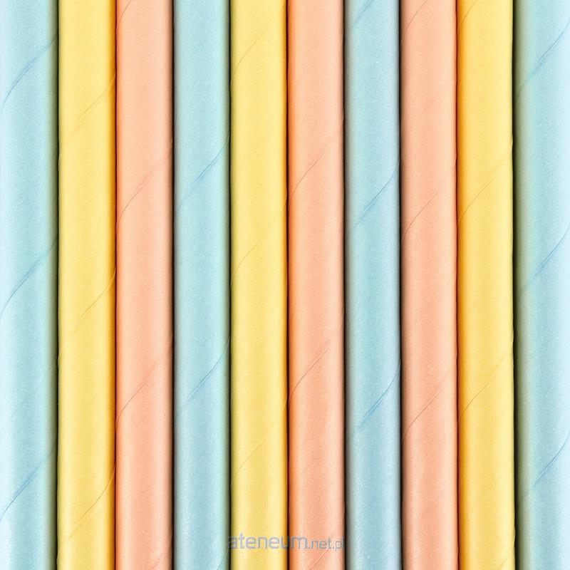 Słomki papierowe Summer time, mix kolorów (turkusowy - 4 szt., żółty - 3 szt., brzoskwiniowy - 3 szt.), długość ok. 19,5 cm.(1 op. / 10 szt.)