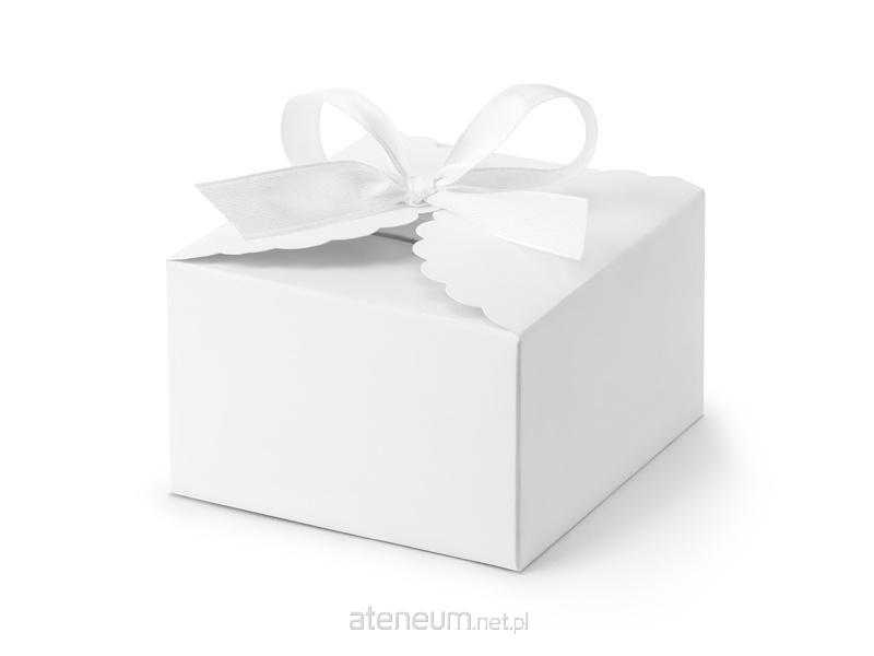 Pudełeczka w kształcie chmurki, wykonane z papieru w kolorze białym, w zestawie z białą tasiemką ok. 3,5 cm. Wymiary po złożeniu ok. 8 x 7,5 x 4,5 cm.(1 op. / 10 szt.)