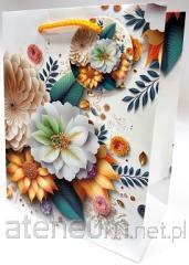 Torebka ozdobna matowa 18x23x10cm białe kwiaty