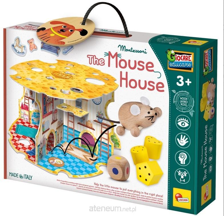 Urocza gra Montessori z drewnianą myszką, która zaprasza dziecko do swojego domku, by grać w wiele gier edukacyjnych. Korzystając z elementów znajdujących się w opakowaniu dziecko odkrywa liczby, kształty geometryczne, kolory oraz uczy się przyporządkowywać przedmioty do odpowiednich pokoi.