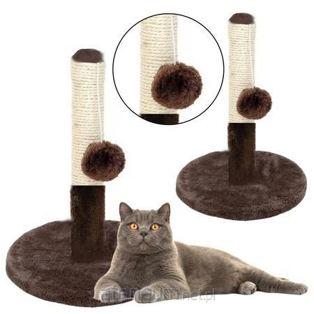 Drapak dla Kota - Słupek do Drapania Wieża 40 cm x 30 cm, Ciemnobrązowy Drapak dla kota to doskonała forma stymulacji i rozrywki, która zapewnia kotu naturalną aktywność fizyczną i dba o jego zdrowie. Słupek pokryty sznurkiem sizalowym oraz wiszący sznurek z pomponem stanowią idealne rozwiązanie do ostrzenia pazurków i zabawy. KLUCZOWE CECHY PRODUKTU Stymulacja i rozrywka Drapak zapewni kotu zdrową i naturalną formę ruchu, co pozytywnie wpłynie na jego kondycję fizyczną i emocjonalną. Solidna konstrukcja Dzięki trwałej budowie drapak pozostanie stabilny nawet podczas intensywnej zabawy. Wygodne materiały Miękki materiał jest przyjemny w dotyku, łatwy do czyszczenia i zapewnia kotu czyste i higieniczne miejsce do zabawy. Dodatkowa zabawa Wiszący sznurek z pomponem, zapewnia możliwość zabawy i rozładowania nadmiaru energii przez kota. Pokrycie sizalowe Słupek pokryty sznurkiem sizalowym jest idealny do drapania, pomagając kotu w utrzymaniu zdrowych pazurków. SPECYFIKACJA Wysokość: 40 cm Rozmiar podstawy: 30 cm Materiał: Sznur sizalowy, MDF, Poliester, Metal Rodzaj: Drapak niski słupek do drapania wieża ZAWARTOŚĆ ZESTAWU Drapak - słupek do drapania z wiszącym sznurkiem DODATKOWE ATUTY Atrakcyjny design w ciemnobrązowym kolorze, pasujący do każdego wnętrza Łatwy montaż i czyszczenie zapewnia wygodę użytkowania Idealny dla kotów wszystkich ras Ten drapak to doskonały sposób na ochronę mebli oraz dostarczenie kotu godziny zabawy i aktywności!