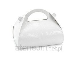 Ozdobne pudełka na ciasto z papieru w kolorze białym. Na pudełku błyszczący, perłowy nadruk gałązek z listkami i kwiatkami. Set zawiera 10 sztuk, wymiary pudełka po złożeniu ok. 16x15x8 cm. Pudełka do samodzielnego złożenia bez użycia kleju.(1 op. / 10 szt.)