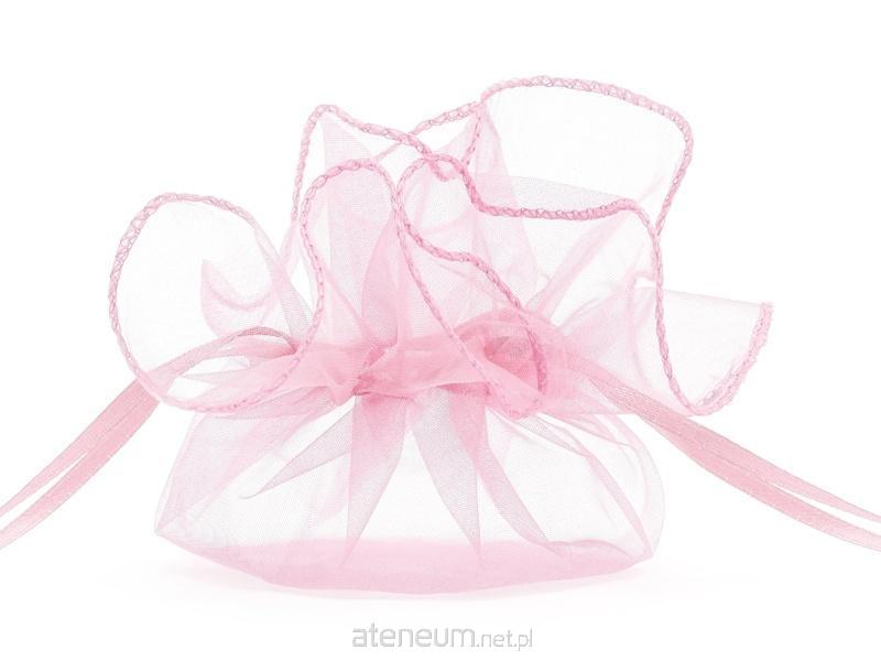Ściągane woreczki z gładkiej organzy w kolorze różowym, średnica ok. 25 cm. Idealne dla gości weselnych.(1 op. / 10 szt.)