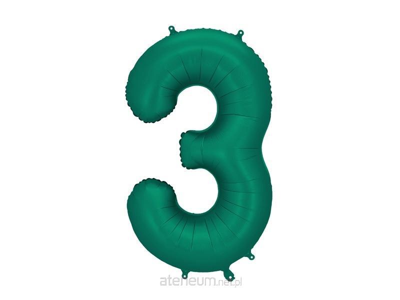 Balon foliowy satynowy Cyfra 3 w kolorze butelkowej zieleni, rozmiar przed napompowaniem ok. 100 cm (39''), rozmiar po napompowaniu ok. 86 cm (34''). Do napompowania powietrzem i helem. Zestaw zawiera słomkę. Balon jest samouszczelniający się. Posiada haczyki ułatwiające montaż balona do dekoracji.