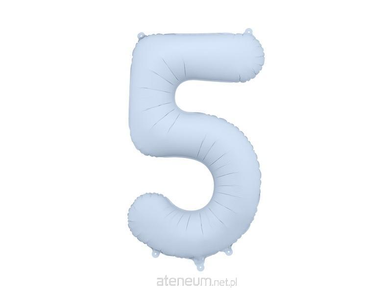 Balon foliowy matowy Cyfra 5 w kolorze mglistym niebieskim, rozmiar przed napompowaniem ok. 100 cm (39''), rozmiar po napompowaniu ok. 86 cm (34''). Do napompowania powietrzem i helem. Zestaw zawiera słomkę. Balon jest samouszczelniający się. Posiada haczyki ułatwiające montaż balona do dekoracji.