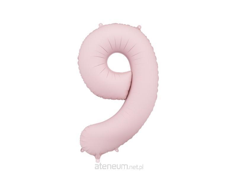 Balon foliowy matowy Cyfra 9 w kolorze jasnoróżowym, rozmiar przed napompowaniem ok. 100 cm (39''), rozmiar po napompowaniu ok. 86 cm (34''). Do napompowania powietrzem i helem. Zestaw zawiera słomkę. Balon jest samouszczelniający się. Posiada haczyki ułatwiające montaż balona do dekoracji.