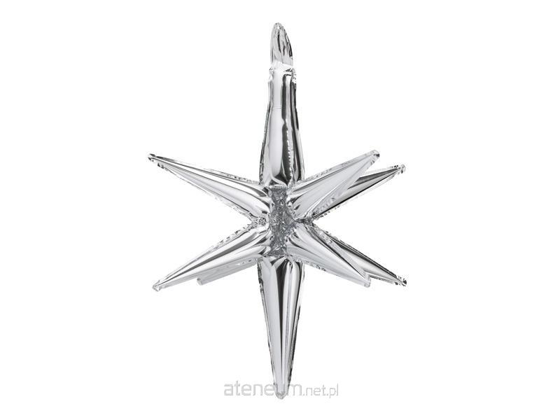 Balon foliowy metalizowany Gwiazda 3D w kolorze srebrnym, rozmiar przed napompowaniem ok. 90 x 120 cm (35 x 47''), rozmiar po napompowaniu ok. 105 cm (41''). Do napompowania powietrzem. Zestaw zawiera słomkę.
