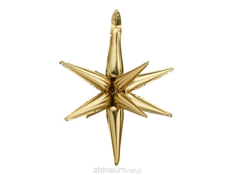 Balon foliowy matowy Gwiazda 3D w kolorze złotym, rozmiar przed napompowaniem ok. 90 x 120 cm (35 x 47''), rozmiar po napompowaniu ok. 105 cm (41''). Do napompowania powietrzem. Zestaw zawiera słomkę.