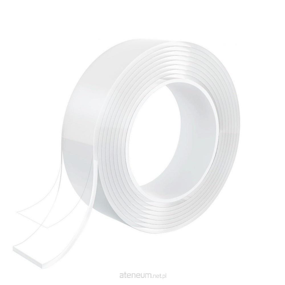 Dwustronna przeźroczysta taśma służąca do mocowania różnych przedmiotów do ścian, drzwi, okien itp. Jest łatwa do usunięcia, nie pozostawia śladów. Taśma Nano Tape nadaje się do ponownego użycia, wystarczy spłukać taśmę czystą wodą. Jest wyjątkowo elastyczna, można ją przycinać do dowolnej długości. Stanowi alternatywę dla pinezek, taśmy dwustronnej, a także gwoździ i kołków. Nadaje się do użytku na wszystkich gładkich i nieporowatych powierzchniach, jakich jak: blat biurka, szafki kuchenne, płytki w łazience, panele itp. Wymiary: 3 cm x 3 m, grubość: 2 mm