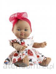 Szukasz na prezent dla dziewczynki ślicznej, wysokiej jakości lalki hiszpańskiej, która urzeka urodą, modnym strojem oraz długimi, gęstymi włosami idealnymi do projektowania fryzur? Marina 1508 cenionej marki Marina & Pau to dopracowana w każdym detalu lalka - przyjaciółka, która sprawi radość każdej małej kolekcjonerce wyjątkowych zabawek. Polecamy dzieciom w wieku od lat trzech. Dlaczego lalka hiszpańska mulatka Marina & Pau 1508 jest jedyna w swoim rodzaju? Precyzja wykonania i szyty ręcznie, stylowy strój to tylko niektóre zalety lalki hiszpańskiej Marina & Pau 1508. Odkryj inne, istotne szczegóły: winylowy materiał jest przyjemny w dotyku, miękki i bezpieczny dla dziecka, przypominające prawdziwe, stale otwarte brązowe oczy są opatrzone długimi rzęsami i delikatnie namalowanymi brwiami, lśniące usta i zaróżowione policzki doskonale odwzorowują dziecięcą buzię, długie, lekko kręcone czarne włosy są idealne do czesania, głowa, ręce i nogi są ruchome, więc można lalę z łatwością posadzić i ułożyć w różnych pozach. Czym wyróżnia się strój lalki hiszpańskiej marki Marina & Pau? Winylowa lalka hiszpańska Marina & Pau 1508 urzeka modnym outfitem i akcesoriami: biała, miękka bluzka w niebieskie paseczki perfekcyjnie komponuje się z białymi spodniami, białe majteczki na gumeczce, bawełniane kolorowe skarpetki oraz czerwone sznurowane buty świetnie dopełniają całość looku, włosy są zebrane przy pomocy czerwonej opaski, w zestawie okulary oraz kolorowa materiałowa torba dla lalki. Wszystkie części garderoby można z łatwością zdjąć, a lalę przebrać lub wykąpać. Wybierz śliczną, wykonaną w Hiszpanii lalkę przyjaciółkę! Jeśli chcesz zaskoczyć dziecko unikalną lalką, zachwycającą urodą, idealną do czesania i kąpania, skuś się na zaprojektowaną i ręcznie malowaną w Hiszpanii dziewczynkę o imieniu Marina. Zapakowana jest w stylowo wyglądające, solidne pudełko z wieczkiem w różowo-beżowej kolorystyce, spełniające z powodzeniem funkcję opakowania prezentowego.