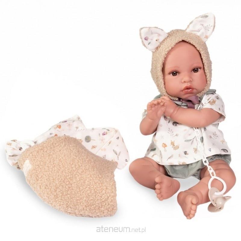 Zaprojektowana i stworzona z dbałością o każdy detal, lalka hiszpańska 33013 to wyjątkowy projekt Antonio Juan. Jedna z najbardziej rozpoznawalnych marek proponuje uroczego chłopca imieniem Erik w zestawie z wyjątkowym nosidłem chustą dla dziecka. 42- centymetrowy bobas przypomina prawdziwe niemowlę. Wykonana z gładkiego, bezpiecznego dla maluchów winylu lalka hiszpańska 33014 posiada w miękkim brzuszku przyjemną w dotyku wyściółkę, dzięki czemu jest idealna do przytulania. Przegubowe ciało oraz ruchome kończyny pozwalają na posadzenie bobasa. Poznaj szczegóły lalki hiszpańskiej 33014 o imieniu Erik! Lalka hiszpańska Erik 33014 marki Antonio Juan wygląda jak żywe dziecko: brązowe, ręcznie malowane oczy opatrzone są długimi rzęsami i brwiami, uroku dodają lśniące usteczka oraz rumiane policzki, wyrzeźbione na główce włosy zapewniają najmłodszym bezpieczeństwo podczas zabawy, dopracowane paznokcie, linie papilarne oraz fałdki nadają zabawce realistycznego wyglądu. Uzupełnij kolekcję lalek hiszpańskich chłopca w modnym outficie! Lalka hiszpańska 33014 marki Antonio Juan to marzenie każdego dziecka, uwielbiającego zabawę w odgrywanie ról. Autentyczny wygląd i waga bobasa pozwalają z łatwością wcielić się w rolę troskliwego rodzica. Erik ubrany jest w oryginalnie zaprojektowaną bawełnianą bluzeczkę w roślinny wzór, krótkie zielone spodenki oraz futrzaną wiązaną czapeczkę ze słodkimi uszkami. Strój z łatwością można zdjąć. W zestawie znajduje się także przypinany smoczek na łańcuszku oraz nosidło chusta na ramię dla dziecka. W całości wykonana w Hiszpanii lalka z miękkim brzuszkiem oraz winylową główką i kończynami zapakowana jest w oryginalne, biało-różowe pudełko ozdobne z wieczkiem, które może służyć także jako łóżeczko dla bobasa. Erik 33014 to wspaniały pomysł na spersonalizowany prezent!