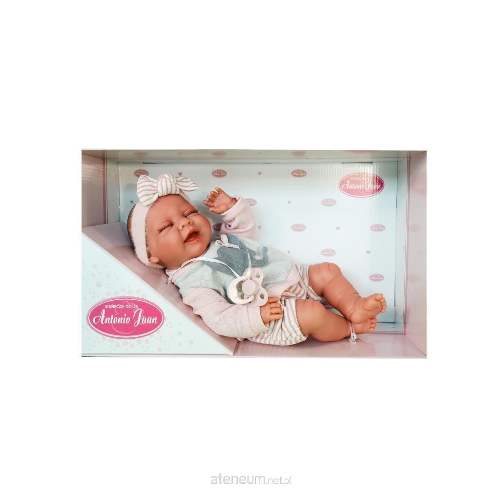 Uśmiechnięta, śpiąca Lluna 70401 to dziewczynka z miękkim brzuszkiem, która wyróżnia się oryginalną konstrukcją. Specjalne wypełnienie pozwala na ułożenie jej w różnych pozach charakterystycznych dla niemowlaka. Zachwyca także radosna twarzyczka oraz stale zamknięte oczy opatrzone wianuszkiem długich rzęs. 34-centymetrowa lala została zaprojektowana dla dzieci w wieku od 3 lat. Hiszpańska lalka Lluna uśmiechnięta z zamkniętymi oczami Realistycznie wyglądający bobas posiada wyrzeźbione włoski oraz delikatnie malowane brwi, paznokcie, linie papilarne i fałdki. Baby Toneta od marki Antonio Juan ubrana jest w ciepłą szaro-różową bluzę oraz krótkie spodenki w paseczki. Uroku dodaje aplikacja o kształcie głowy słonia oraz luksusowo prezentująca się opaska na głowę z kokardą. Wszystkie elementy garderoby można łatwo zdjąć, a maleństwo przebrać w inny zestaw ubranek. W zestawie znajduje się także smoczek na tasiemce satynowej. Uśmiechnięta lalka hiszpańska Lluna marki Antonio Juan Idealna do przytulania i zabawy lalka hiszpańska 70401 posiada wszystkie wymagane certyfikaty bezpieczeństwa CE. Ręcznie wykonana w całości w Hiszpanii, zapakowana w biało-różowe, ozdobne pudełko z wieczkiem. Doskonale sprawdza się jako wyjątkowy prezent dla miłośniczki unikalnych zabawek.