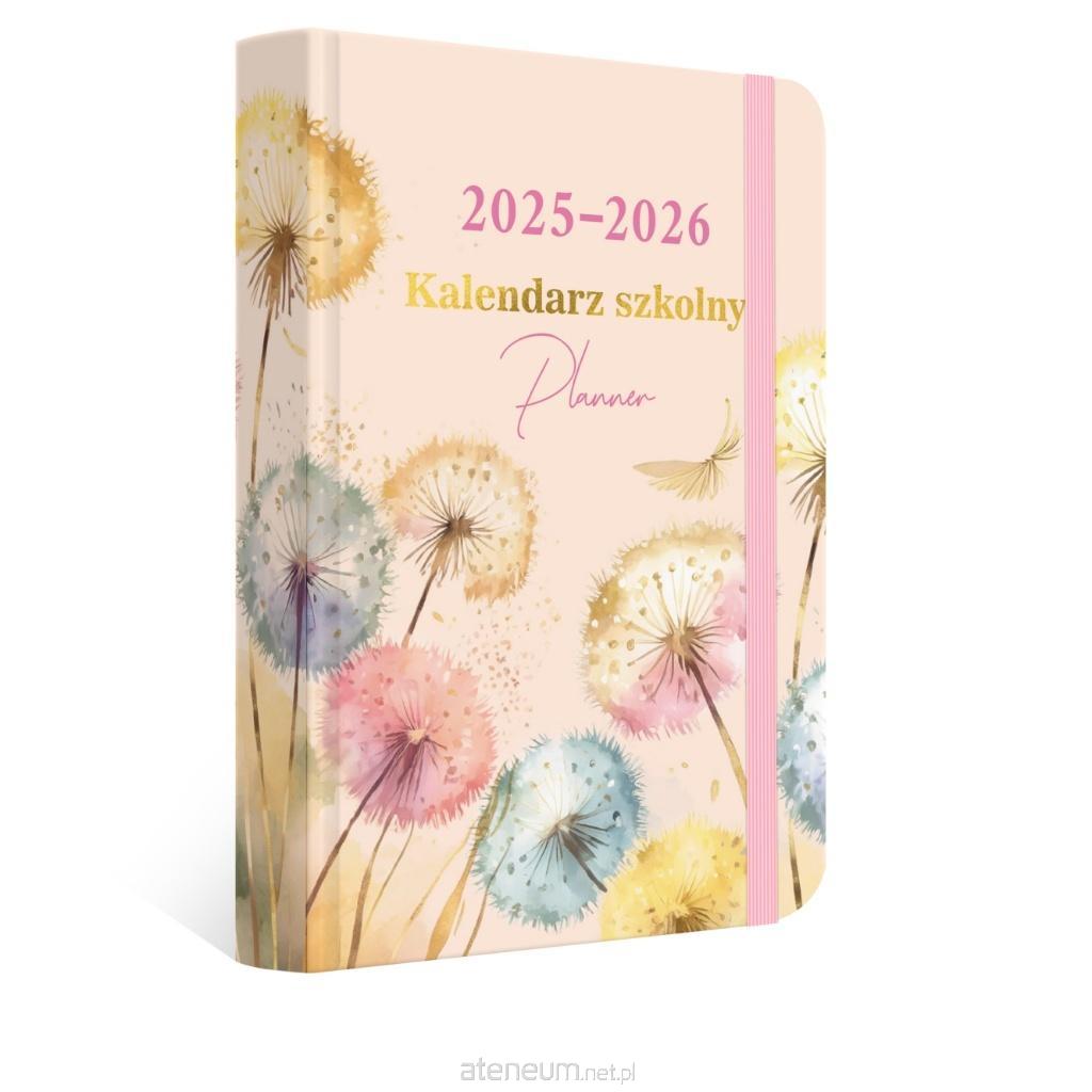 "Kalendarz książkowy. Układ kalendarium dzienny. Kalendarz szyty, 336 str, format 120 mm x 170 mm. Oprawa twarda ze złoceniem, zadruk full kolor, kalendarium od września 2025 do sierpnia 2026, rozkład kalendarium dzienny, sobota i niedziela na 1 stronie, Kalendarz ze wstążką/zakładką.W kalendarzu: plan lekcji, skrócony kalendarz na rok 2025 oraz 2026, dodatkowy planer miesięczny, mapa ferii."