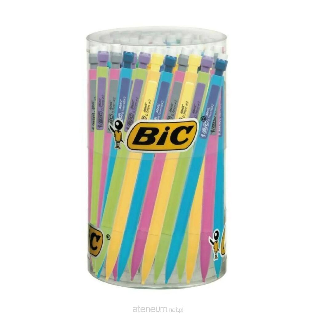 Solidny, lekki, wysoce wydajny ołówek automatyczny BIC Matic Fun dostępny jest w wesołej wersji pop art w żywych kolorach. Ta tuba zawiera 60 ołówków automatycznych z korpusem w kolorze zielonym, niebieskim, żółtym lub różowym. Wyposażony jest w 3 wkłady grafitowe HB o długości 9 cm i średnicy 0,7 mm, które zapewniają intensywny ciemny kolor i gładkość pisania. Grafit można z łatwością wymazać za pomocą wbudowanej na końcu białej gumki. To doskonała opcja do notatek, rysowania i rozwiązywania krzyżówek.