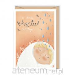 Otwierana kartka, pusta w środku, wykonana na papierze (z certyfikatem EFC) z wyraźnie widoczną fakturą. W zestawie ekologiczna koperta.