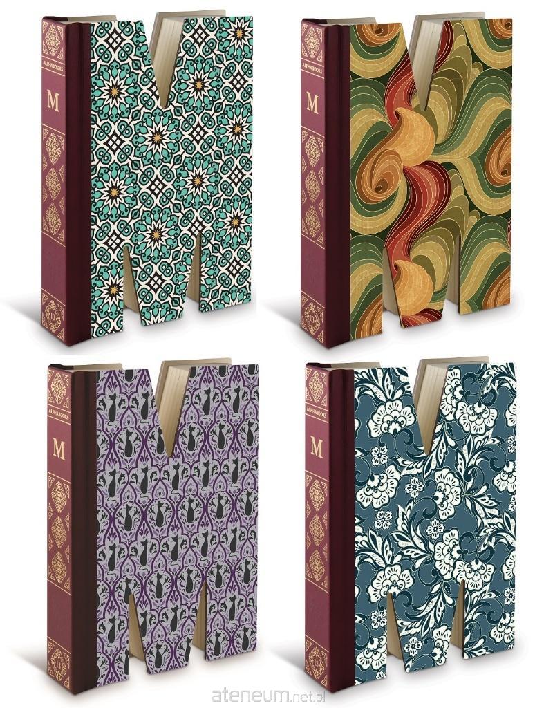 Pięknie zdobiony notes w formie litery. Notatnik na grzbiecie posiada złocenia. Gramatura papieru 120 g/m2. W środku znajdują się gładkie strony. Dostępne litery A, C, D, G, H, J, L, M, N, S, U, W. Okładka występuje w różnych motywach, wzór wysyłany jest losowo.
