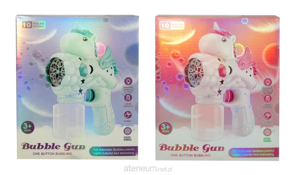 Pistolet do baniek w kształcie jednorożca jest świetnym rozwiązaniem gdyż nie trzeba dmuchać za każdym razem, by bańki wyleciały oraz uważać, żeby nie pękły, wystarczy wcisnąć przycisk, a wydobędą się ich setki. Wkręć płyn do baniek do pistoletu. Wystarczy nacisnąć przycisk, a bańki zaczną wylatywać z pistoletu. Produkt działa na baterie typu AA. Baterie nie są załączone do zabawki. Produkt występuje w kilku wersjach kolorystycznych, wybierany losowo. Cena dotyczy jednej sztuki.